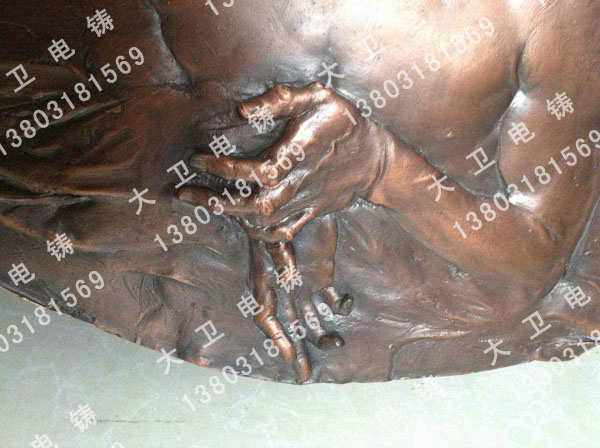 1.材質(zhì): 純紫銅鑄造在材質(zhì)上不會扯皮,表面效果良好。 2.鑄造工藝 電鑄工藝沒有砂眼、收縮、氧化皮、縮松等傳統(tǒng)工藝的鑄造缺陷。以及澆道、冒口在雕塑肌理上的橫行霸道。 3.復(fù)制力 因沒有收縮,可一比一的復(fù)制雕塑作品達(dá)到鑄什么像什么的境界,傳統(tǒng)工藝是達(dá)不到的。 4.平面鑄造 鑄造平面作品更是強(qiáng)項(xiàng),面積最大2m*8m可以整體鑄造。厚度可以均勻掌握到(1mm-8mm)。 聯(lián)系我們
